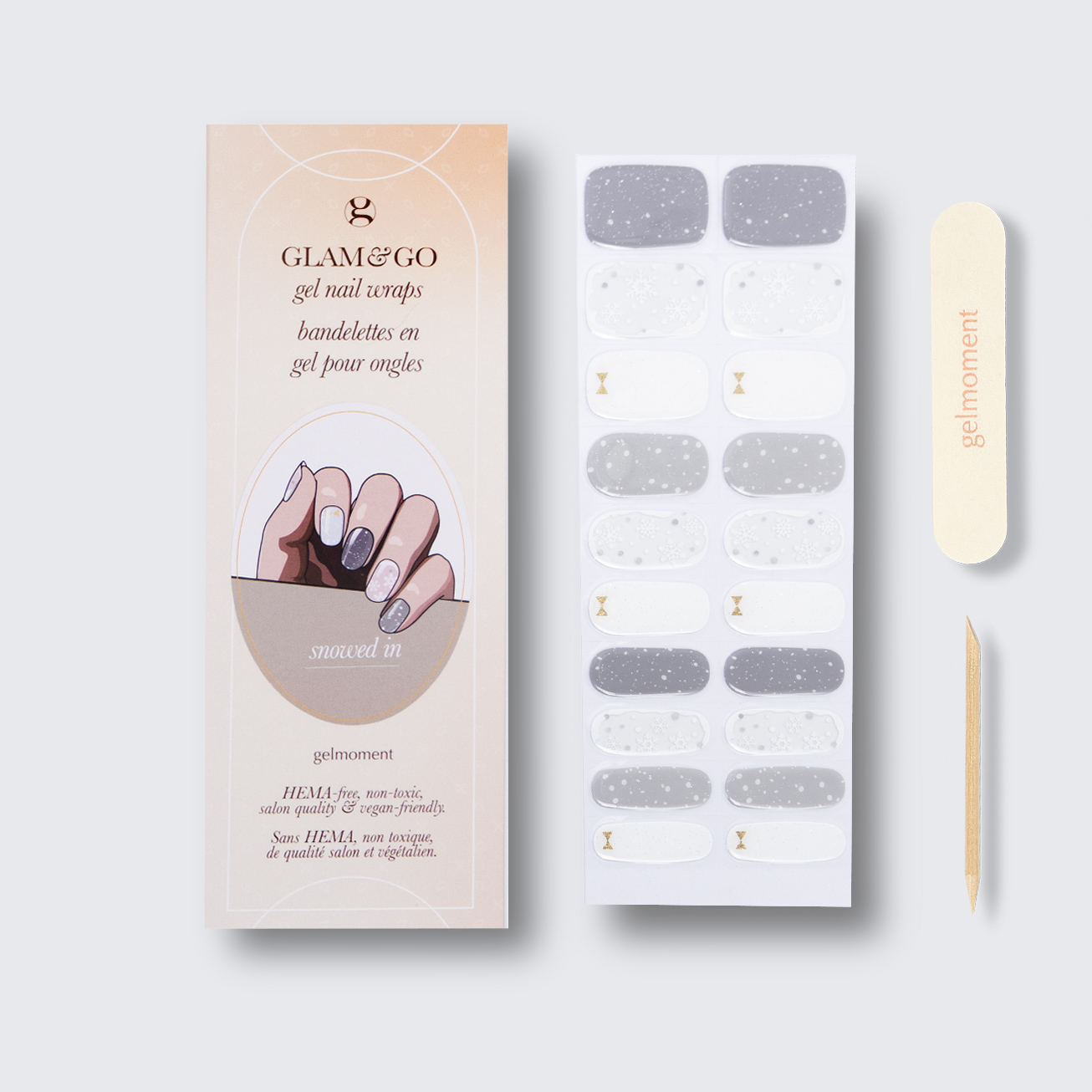 Plus, not only do GLAM & GO gel nail wraps provide the same glossy finish you know and love from our regular gel polish, but they are also HEMA FREE and have a wear time of up to 14+ days.