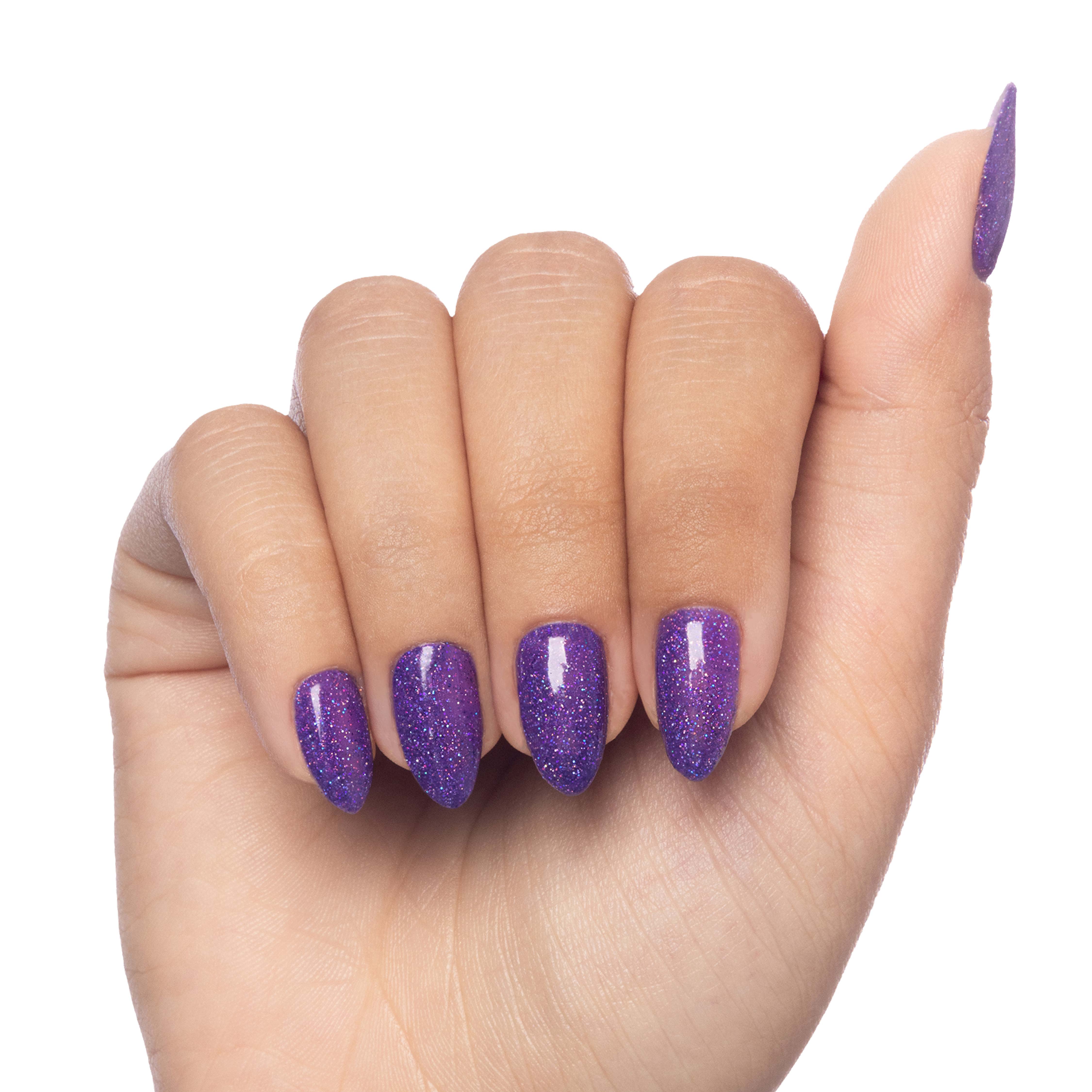 Royal purple. Medium-dark. Shimmer. Opaque.